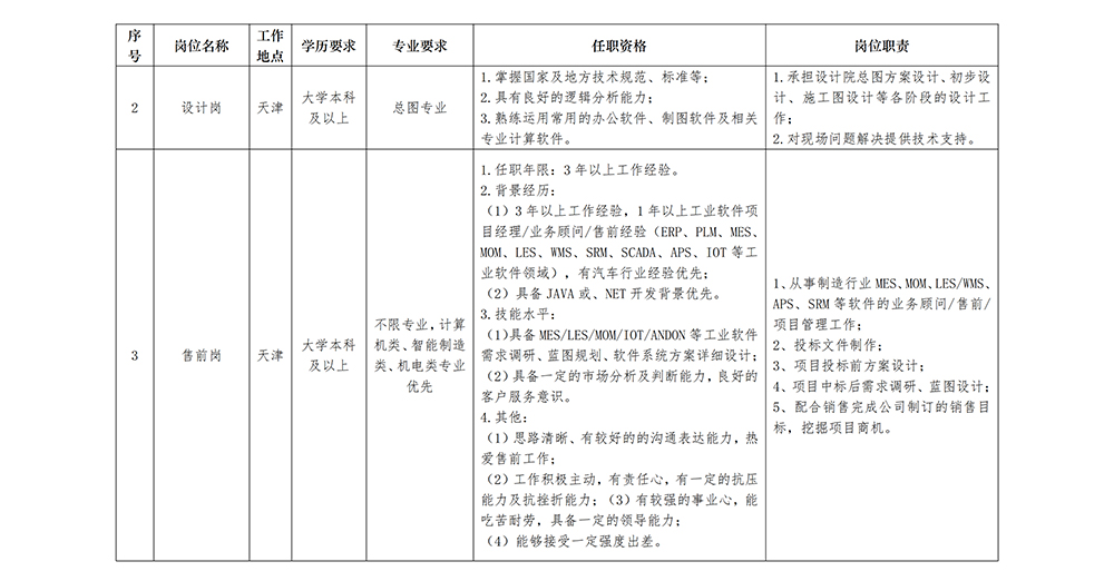中汽研汽車工業(yè)工程(天津)有限公司招聘崗位需求 更新時間: 2023-03-09 點擊:794 所屬欄目: 人才信息 郵箱投遞:career@catarc.ac.cn sjyjob@catarc.ac.cn 聯(lián)系方式:張煜棟 022-84370000-6315 陳馨琳 022-84379888-8580 >>>下載附件<<<