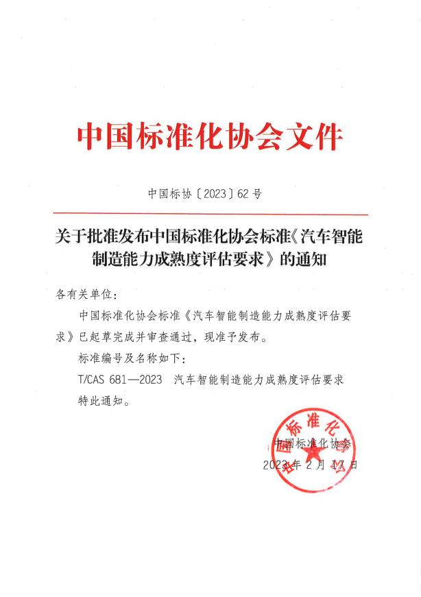 近日,由中國(guó)標(biāo)準(zhǔn)化協(xié)會(huì)組織,設(shè)計(jì)院牽頭起草的汽車(chē)行業(yè)首個(gè)智能制造團(tuán)體標(biāo)準(zhǔn)T/CAS681-2023《汽車(chē)智能制造能力成熟度評(píng)估要求》正式發(fā)布。