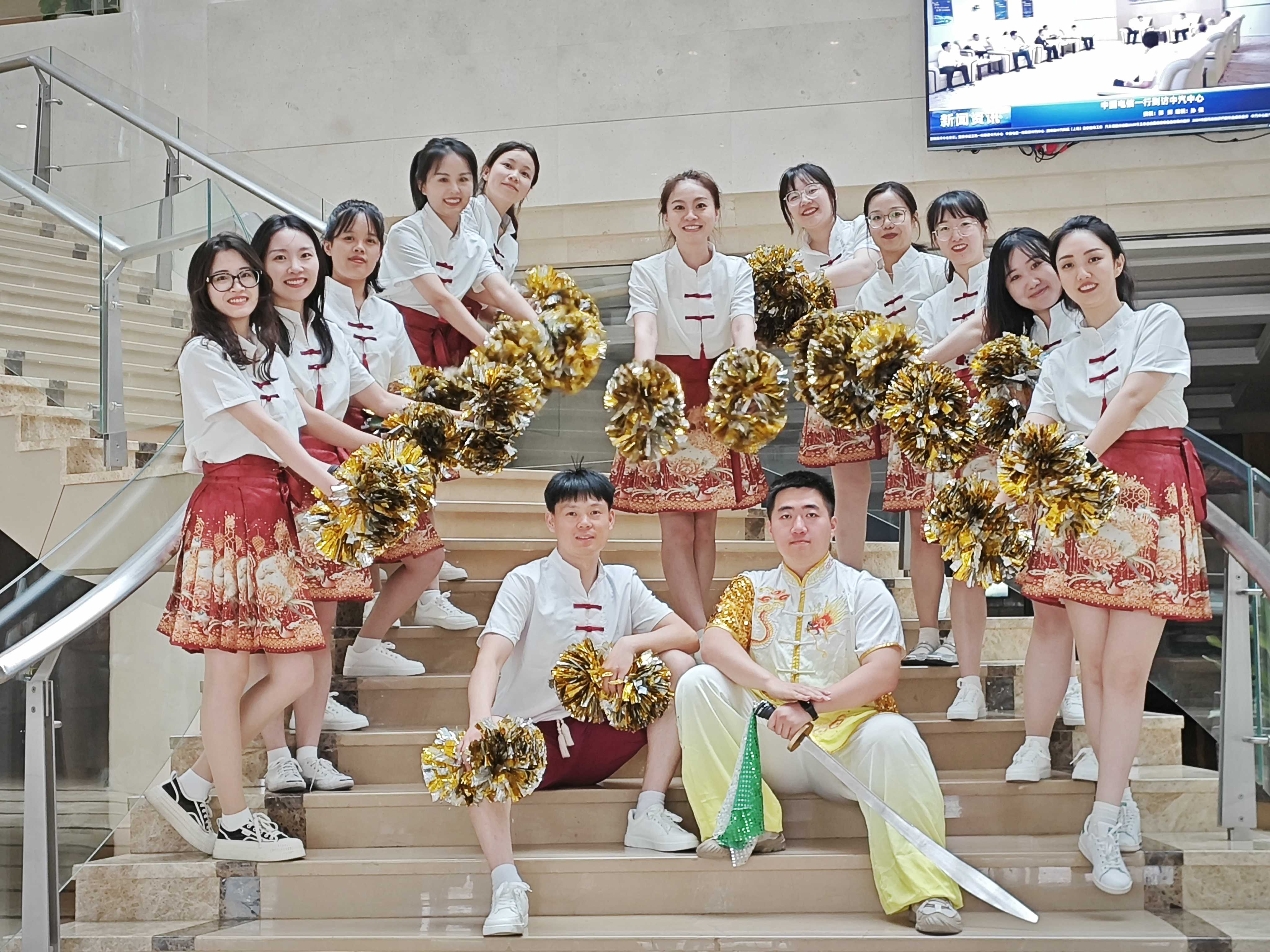 啦啦操:13天的刻苦練習(xí),練習(xí)時(shí)長(zhǎng)累計(jì)超過15小時(shí),13人上場(chǎng),6人隨時(shí)替補(bǔ)支援,為每一場(chǎng)籃球賽到場(chǎng)支援,在運(yùn)動(dòng)會(huì)當(dāng)天最終呈現(xiàn)一場(chǎng)整齊劃一、構(gòu)思巧妙的演出。