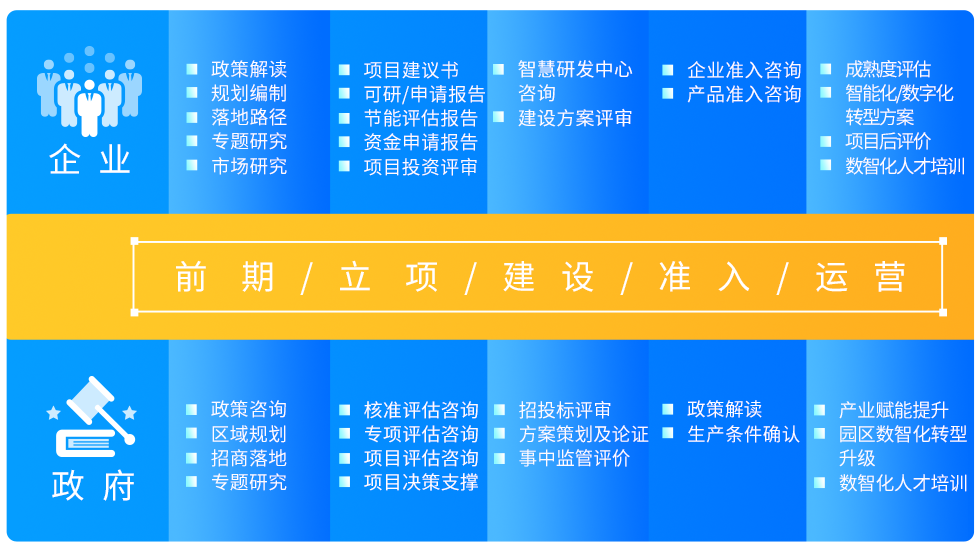 工程咨詢,全稱規(guī)劃與投資咨詢,致力于成為面向政府和企業(yè)的國內(nèi)一流汽車行業(yè)投資研究“智庫”。為各級(jí)政府宏觀調(diào)控、行業(yè)重大項(xiàng)目決策、地方及區(qū)域規(guī)劃編制等提供建議和評(píng)估,為企業(yè)投資項(xiàng)目決策研究、立項(xiàng)備案、工廠準(zhǔn)入、智能制造、數(shù)字化轉(zhuǎn)型、后評(píng)價(jià)提供咨詢服務(wù)和相關(guān)報(bào)告。
